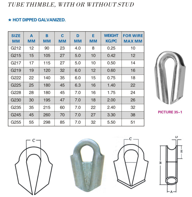 TUBE THIMBLE WITH OR WITHOUT STUD